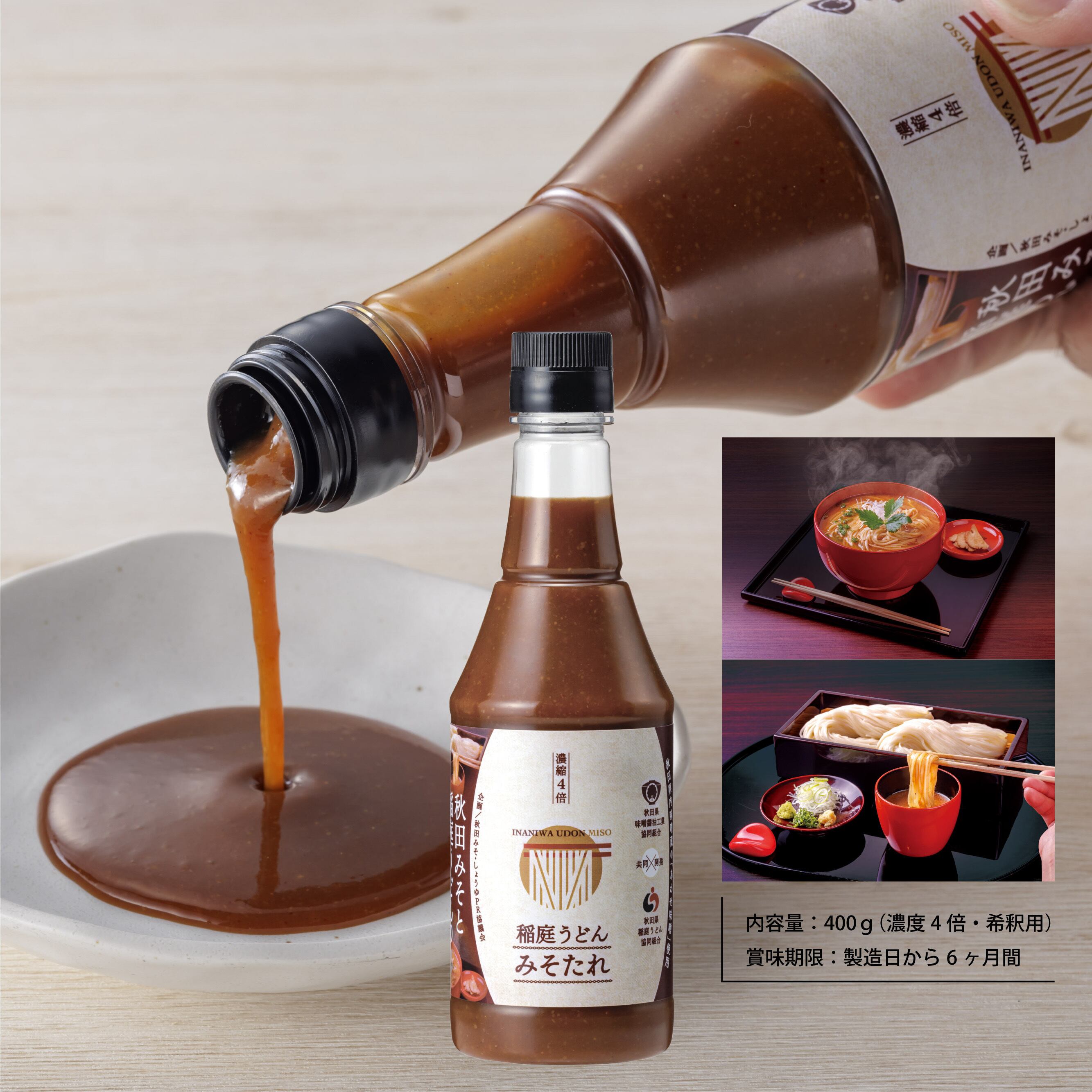 「秋田県味噌醤油工業協同組合」と「秋田県稲庭うどん協同組合」が共同開発した「稲庭うどん みそたれ」。